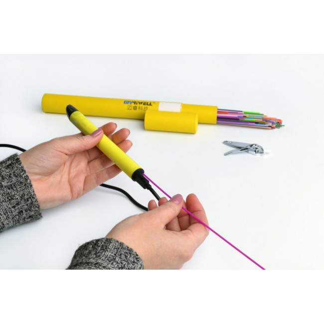 2. Набір пластика PCL, який зберігається в жовтому тубусі. Це зручно, так як пластик не буде розкиданий по всій квартирі, при малюванні. PCL пластик безпечний, його можна використовувати кілька разів. Просто полийте виріб гарячою водою, і він стане по консистенції, як пластилін. Малювати ним можна навіть на шкірі, так як він низькотемпературний. У наборі багато різнокольорових ниток пластика на будь-який смак. Кількість прутків пластика - 5 штук, кольорів - 5, діаметр пластика - 1,75 мм, довжина одного прутика пластику - 5м.
