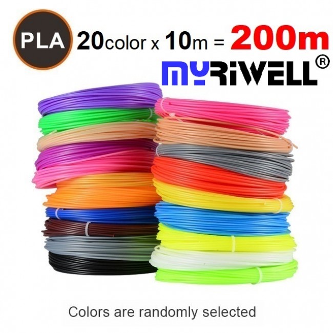 Набір пластика PLA для 3D ручок 200 метрів (20 кольорів по 10 метрів)