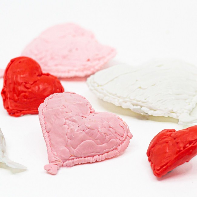 Почніть з обведення контуру найбільшого серця на трафареті. Обережно натисніть на форму, щоб допомогти сформувати пластик, коли він охолоне.